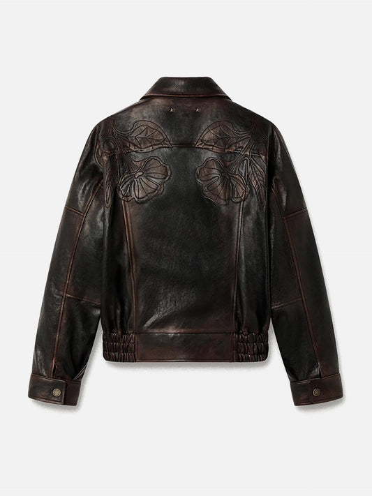 Lederjacke mit Blumen-Stickerei für Damen