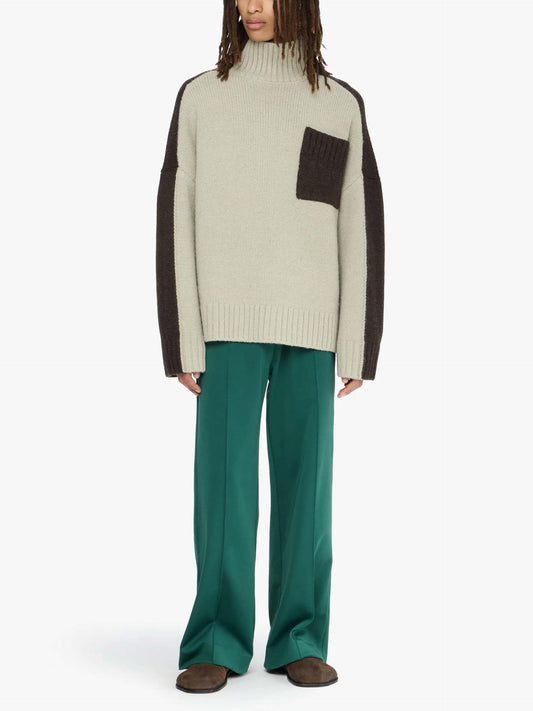 Two-tone turtleneck sweater with patch pocket