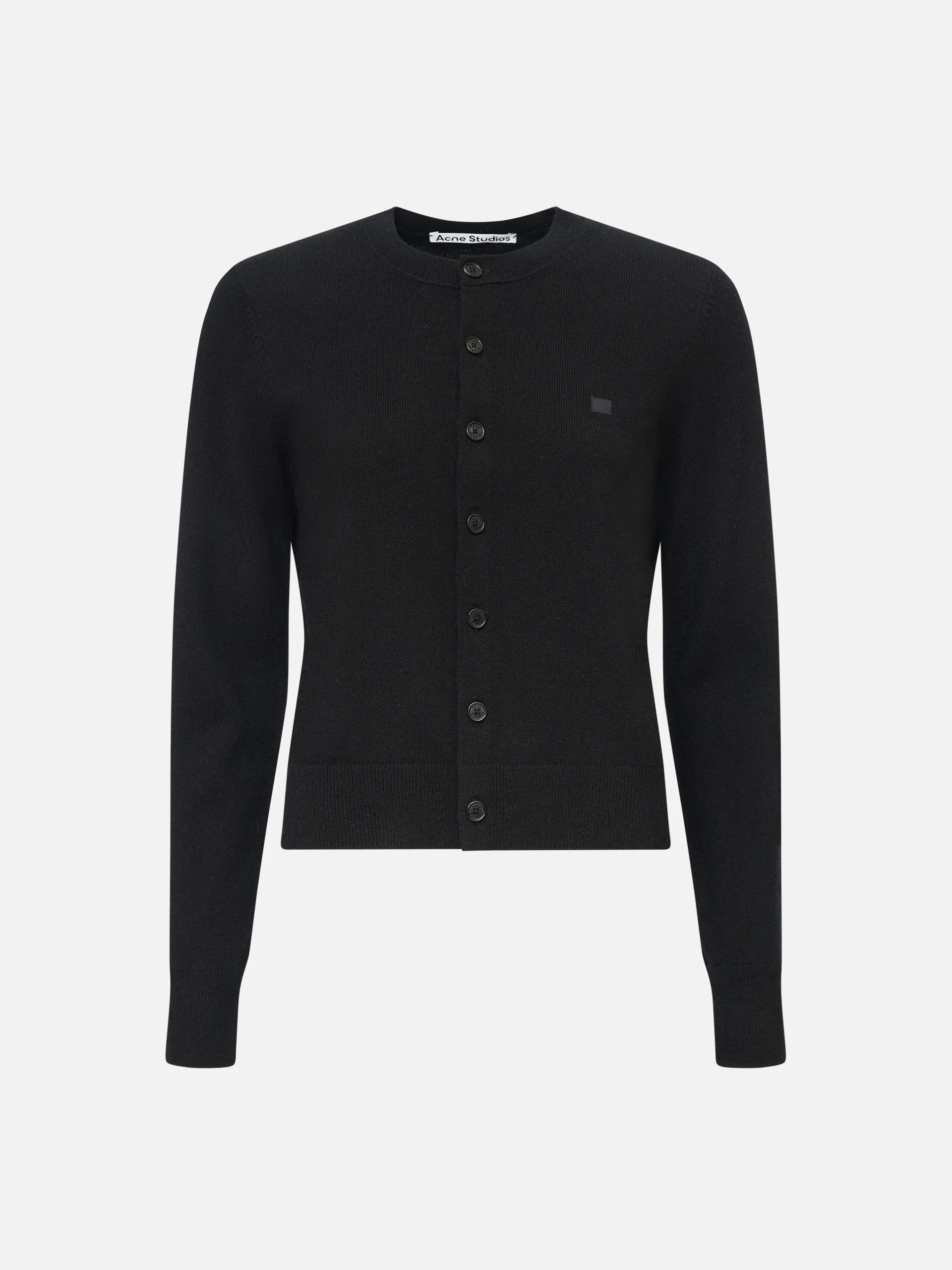 Soft women's cardigan made from a high-quality yak wool blend with the characteristic Acne Studios face logo on the chest. The classic round neckline, ribbed finish and slim fit give the cardigan a feminine silhouette. A versatile signature piece for layering looks or as a soloist.